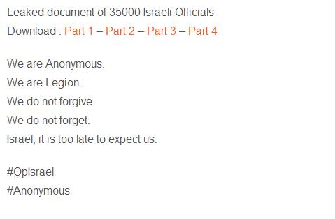 Regierungs-Webseiten wurden binnen kürzester Zeit über 44 Millionen-fach attackiert. Nach eigenen Angaben gelang es über 9000 geheime Daten von israelischen Ministerien zu kopieren und weitere private Daten von 35.000 Mitarbeitern mit ID- und Telefonnummern, Wohnorten und E-Mail-Adressen im Internet zu veröffentlichen. Daraufhin erklärte Chief Information Officer Carmela Avner, die auch verantwortlich für die staatlichen Webseiten des Staates Israel ist, gegenüber CNN: